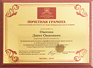 The Company’s active attitude towards excellence contributes to the socio-economic development of the country. Considering Davit Hovsepyan’s impeccable reputation, outstanding professional achievements, his unconditional authority as a true professional in the field, a talented organizer and leader - The Expert Council of the “Committee for Public Awards and Honors” has decided to award Davit Hovsepyan with the "Honorary citizen of the Eurasian Union of States" highest order of public recognition.